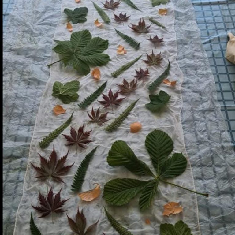 Op zaterdag 27 september organiseert Irma een inspirerende workshop ecoprinten op zijde. Tijdens deze dag maak je kennis met de bijzondere techniek waarbij bladeren en bloemen hun kleur en vorm afgeven op stof. Zo creëer je een unieke, natuurlijke print op een zijden sjaal.